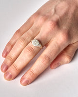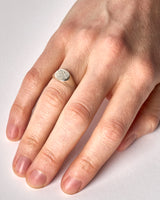 The Canvas Signet Ring is a modern and personalised take on the classic signet ring. With a slight oval that varies in size and individualised hand engraved 'stitches' each.