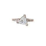 A showstopping ring featuring a trilliant Diamond (G, S12) set in 18ct white gold.The band is embedded with eleven 1.5mm diamonds for additional sparkle