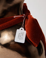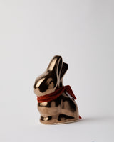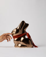 Material: slip-cast earthenware, golden crackle glaze, red velvet ribbon, paper tag stamped. Glazes will vary in texture.
