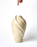 This hand-formed vase is built using the coil technique, featuring a sculpted surface-an intentional gesture inspired by classical sculpture. Referencing marble figures and the elegant tension of necklines and folds, the form explores what is revealed and concealed. Made from smooth white stoneware and finished with a clear glossy glaze. Watertight and easy to clean with warm water.