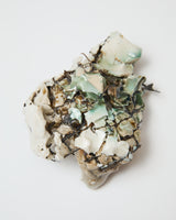 Made from a combination of found materials, traditional ceramic mediums, glass, metals and enamels, this work has been high-fired six times over, facilitating multiple accumulative transformations.