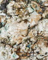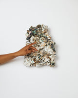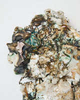 Made from a combination of found materials, traditional ceramic mediums, glass, metals and enamels, this work has been high-fired six times over, facilitating multiple accumulative transformations.