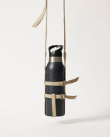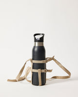 This item is comprised of 3 fully adjustable straps, that forms a harness around water vessels of any size. This bottle holder consists of an adjustable shoulder strap for ease of length as well as adjustable D rings around the width of the bottle.