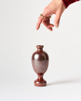 A small footed budvase, thrown in two parts and then joined. It is finished in a rich burgundy glaze.