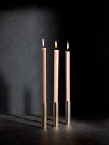 Hand crafted from solid brass, designed to fit a standard dinner candlestick. As brass is a living finish, it will patina with age the more it is handled, adding character to the pieces. Handmade in Bendigo, Australia.