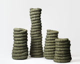 Each form is stitched using methods that mirror the way rushes were traditionally woven honouring ancestral technique while embracing material experimentation. The works celebrate weaving not only as a method of making but as a living act of cultural resilience. Over time, materials may change, but the significance of the stitch remains.