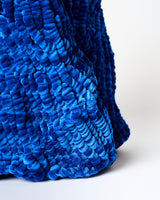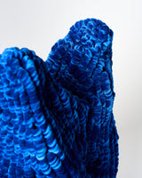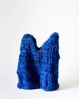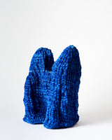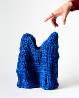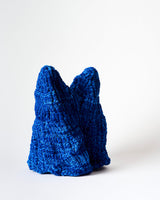 'Double Time' is handwoven in Pattle's now signature blue velvet. The work is a result of a cyclical studio process; a larger sculpture was un-woven and the velvet knotted once more into a new form. In this endless sway of erosion and accretion, the material is constant. 'Double Time' has the shape of something self-formed; reflexive of and in itself.