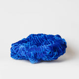 Handwoven using coil basketry techniques, Pattle's Lithic series reworks prehistoric stone-hewn vessels in lush blue velvet. Each vessel is slowly amassed via a time-intensive process of knotting velvet yarn to create a dense organic surface and structure. The resultant vessels joyfully muddle past forms and present material, honouring utilitarian objects at the expense of their usability. Pattle's work is centred on material culture, exploring how everyday objects may be the only signifier by which our lives can be decrypted after we are gone. The Lithic series imagines the future artefacts of our contemporary material culture as situated within an anthropocenic dissolution of the organic and inorganic, of nature and culture.