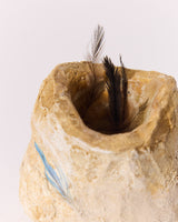 Material: earthen clay, pipe clay, emu fat, wattle sap, ochres, silcrete, feather, charcoal, abalone shell. Image courtesy the artist