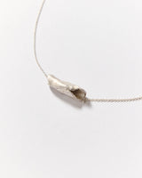 The Organic Fold necklace is hand pressed, folded and cast in sterling silver. With each form, Celia allows the material and process to guide the outcome of each unique piece. Each piece is unique in form.