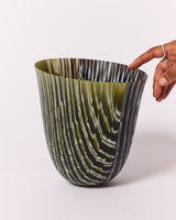 Cheryl Edwards is a glass artist based in Melbourne. Cheryl started her art journey as a studio potter. This would lead to her studying glass making and a complete switch of art mediums. In 2003 she finished a Bachelor of Applied Arts in Glass from Monash University. After graduating children arrived on the scene and her art practice took a back seat for quite a while. Fast forward to the COVID pandemic, a forced hiatus at home and she was finally inspired to build her studio. The Italian glass technique known as Murrini captivates her. She uses this complex technique of creating beautiful intricate patterns in glass. Cheryl creates vessels that convey feelings associated with places and moods. Drawing from her many travels as inspiration. She forms her large organic vessels in her kiln using the thermal fluidity of glass and gravity. Using this technique to produce subtle undulating patterns with intricate colours and textures.