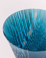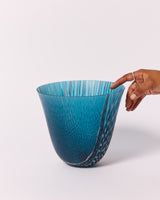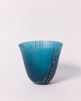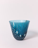 Aqueous Blue #39 is an art piece using the Murrini technique. It is made with sheets of coloured glass that are stacked together then heated and stretched. Its subtle organic shape is formed in a kiln using gravity and heat.