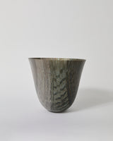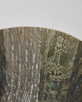 Aqueous Green #2 is an art piece using the Murrini technique. It is made with sheets of coloured glass that are stacked together then heated and stretched. it's subtle organic shape is formed in a kiln using gravity and heat.