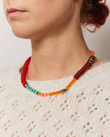 The Short Zebra Necklace is made from laser-cut perspex disks, designed and cut at the studio, and a silver part with an organic- imperfect tubular form and a silver clasp with the silver button logo. The Zebra Collection is inspired by the powerful visual impact of stripes, especially in nature. Not one necklace is identical; the same pool of colours in variations. It can be layered with the Long Zebra Necklace.