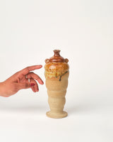 A wheel-thrown vessel with a playful sculptural quality. Handmade with iron-bearing stoneware stoneware and fired to cone 8.