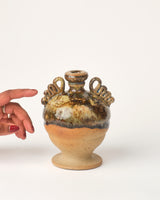 A wheel-thrown vessel with a playful sculptural quality. Handmade with iron-bearing stoneware stoneware and fired to cone 8.