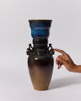 A wheel-thrown vessel with a playful sculptural quality. Handmade with iron-bearing stoneware stoneware and fired to cone 8.