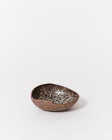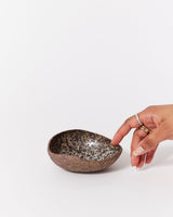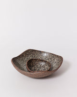 A flat hand built, vessel with organic raised edges. Finished with multi speckled interior and brown-speckled exterior. Beautiful as a standalone piece or as part of a stackable set featuring other Tracy Muirhead vessels. Due to the handmade nature of this item, variances may occur between pieces
