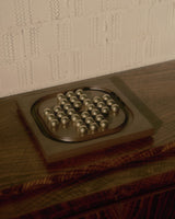 This set features a handmade walnut square base by some lovely friends, with bespoke tokens available in three different materials: solid brass, obsidian glass, or rose quartz.