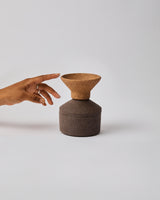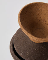 Indulge in the allure of contrast with our distinctive storage vessel, a harmonious blend of darker stoneware tones designed for the storage of personal items or culinary treasures. Wheel-thrown and hand-finished, this vessel showcases beautiful angular lines, adding a touch of sophistication to your storage experience.