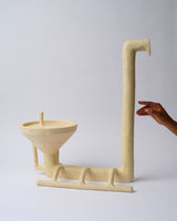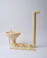 Daniel's fun vessels are an eccentric take on the conventional, playing with exaggerated handles, spouts and forms, he pushes the boundaries of what exactly constitutes a vessel. Living by a resourceful ethos of up-cycling materials in his immediate environment drives his unique creations. This approach results in one-off pieces that push design boundaries while utilising his technical skills. Traditional methods of hand- building with minimal machining connect him to the instinctive process of creation. This evokes an inevitable connection between the object and its creator.