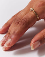 Her practice uses processes of lost wax casting and hand fabrication to create pieces made from precious metals and gemstones.
