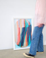 This performative series engages primarily with the viewer, facilitated by the interplay of materials that blend colour and dynamic composition to produce an anaglyphic reflection. Each encounter with the artwork is a personalised experience, offering a playful and nostalgic journey of self-discovery.