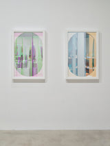 This performative series engages primarily with the viewer, facilitated by the interplay of materials that blend colour and dynamic composition to produce an anaglyphic reflection. Each encounter with the artwork is a personalised experience, offering a playful and nostalgic journey of self-discovery.