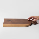 A cheese or serving board hand carved in walnut and finished with food safe mineral oil.