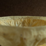 “Gathering” is a series of vessels that explores the form and materiality of hand-made washi paper. Drawing on an endangered historical tradition of making clothing from washi, called kamiko, DNJ PAPER have merged garment-making techniques with the surprising material properties of washi. Stitched paper ichirin-zashi (single flower vase), constructed from a combination of hand and machine-made Japanese paper. The paper was produced by Kikuchi Seishi in Ehime Prefecture, and Awagami Factory in Tokushima Prefecture. The visible dark flecks are the outer bark of the K?zo plant, also known as paper mulberry. This vessel has been treated with organic beeswax, and is water-tight. Please avoid placing it near heat sources.