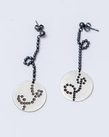 A pair of of drop earrings with oxidized beading loop pattern. Made from sterling silver and beads, featuring a stud fitting.