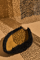 Makers Mark is a series of sculptural works made from manipulated industrial baler twine. Through repetitious gestures, Davies works intimately with the material to produce new surface qualities through a learnt understanding of how this fibre responds to heat, tension and weaving. Intuitively pressing, twisting, joining and mark making through self-developed process-driven techniques. In working with this material, Davies acknowledges the history of rural and industrial labour and draws on the agricultural memories found within the material. The unique qualities of the material have been carried forward - the marks, stains, and wear - to recall its previous uses and the human stories connected to them.