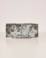 Each sculptural tile is made of waste glaze, oxide and porcelain material blends. The blue-grey hues are generated from the presence of cobalt and copper in the accumulated waste glaze from class experiments conducted at the School of Clay and Art, where the artist works as a teacher. There is waste material in both the clay body and the surface. All images were printed in waste glaze pre-firing with a paper lithography technique, then single fired.