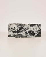 Each sculptural tile is made of waste glaze, oxide and porcelain material blends. The blue-grey hues are generated from the presence of cobalt and copper in the accumulated waste glaze from class experiments conducted at the School of Clay and Art, where the artist works as a teacher. There is waste material in both the clay body and the surface. All images were printed in waste glaze pre-firing with a paper lithography technique, then single fired.
