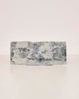 Each sculptural tile is made of waste glaze, oxide and porcelain material blends. The blue-grey hues are generated from the presence of cobalt and copper in the accumulated waste glaze from class experiments conducted at the School of Clay and Art, where the artist works as a teacher. There is waste material in both the clay body and the surface. All images were printed in waste glaze pre-firing with a paper lithography technique, then single fired.