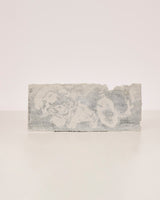 Each sculptural tile is made of waste glaze, oxide and porcelain material blends. The blue-grey hues are generated from the presence of cobalt and copper in the accumulated waste glaze from class experiments conducted at the School of Clay and Art, where the artist works as a teacher. There is waste material in both the clay body and the surface. All images were printed in waste glaze pre-firing with a paper lithography technique, then single fired.