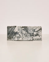 Each sculptural tile is made of waste glaze, oxide and porcelain material blends. The blue-grey hues are generated from the presence of cobalt and copper in the accumulated waste glaze from class experiments conducted at the School of Clay and Art, where the artist works as a teacher. There is waste material in both the clay body and the surface. All images were printed in waste glaze pre-firing with a paper lithography technique, then single fired.
