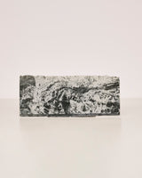 Each sculptural tile is made of waste glaze, oxide and porcelain material blends. The blue-grey hues are generated from the presence of cobalt and copper in the accumulated waste glaze from class experiments conducted at the School of Clay and Art, where the artist works as a teacher. There is waste material in both the clay body and the surface. All images were printed in waste glaze pre-firing with a paper lithography technique, then single fired.