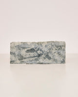 Each sculptural tile is made of waste glaze, oxide and porcelain material blends. The blue-grey hues are generated from the presence of cobalt and copper in the accumulated waste glaze from class experiments conducted at the School of Clay and Art, where the artist works as a teacher. There is waste material in both the clay body and the surface. All images were printed in waste glaze pre-firing with a paper lithography technique, then single fired.