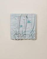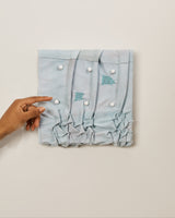 Through the replication of housework in my process and the use of labour-intensive techniques, such as smocking, this body of work quietly demonstrates visible and invisible labour that takes place in both methods of artmaking, and inside domestic settings. Second hand textiles evoke a familiarity of moments past, responding to unknown memories, bodies and people unique to each material’s history. Here, expanded painting and craft practices collide, seeking to reveal the intimacies and complexities of these personal textile materials.” – Hannah Hall