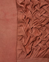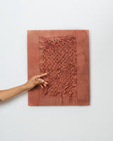 Hannah Hall is an Naarm/Melbourne-based artist, influenced by modernist abstraction and late 20th century textile art history. Her abstract, textile-based work, contemplates the layered complexities of material, including themes of materiality, craft, labour, domesticity, and memory. Traditional techniques (such as smocking, tucking, pleating, and slashing) merge with staining processes using fruits, vegetables, spices, and synthetic pigments, to create works occupy a hybrid space between expanded painting and craft practices.