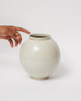 Moon Jars, due to their size, were traditionally made by joining two hemispherical halves. Recognised as a unique form gaining an almost mythological status spanning history and continents, this enigmatic jar has throughout its history continually inspired translations. We present our translation of this classic piece, a contemporary reworking of the form, smaller in scale and thrown in one piece on the wheel. A pot of certainty, paradox and always slightly imperfect - the Moon Jar truly is a contemplative object.