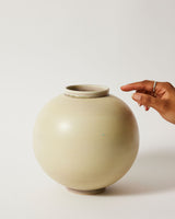 Moon Jars, due to their size, were traditionally made by joining two hemispherical halves. Recognised as a unique form gaining an almost mythological status spanning history and continents, this enigmatic jar has throughout its history continually inspired translations. We present our translation of this classic piece, a contemporary reworking of the form, smaller in scale and thrown in one piece on the wheel. A pot of certainty, paradox and always slightly imperfect - the Moon Jar truly is a contemplative object.
