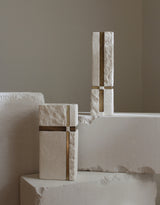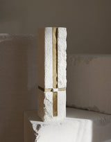 In this first body of work, Jan fulfils an imagined brief from Italian architect Carlo Scarpa (1906—1978) for his Olivetti Showroom completed in 1958. These artworks speak to and highlight Scarpa’s iconic design – a harmony of organic materials, textures and linear brass elements. Her response is imbued with an honesty and reverence that is clear in both intention and materiality.