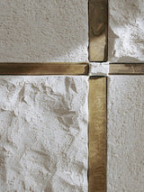 In this first body of work, Jan fulfils an imagined brief from Italian architect Carlo Scarpa (1906—1978) for his Olivetti Showroom completed in 1958. These artworks speak to and highlight Scarpa’s iconic design – a harmony of organic materials, textures and linear brass elements. Her response is imbued with an honesty and reverence that is clear in both intention and materiality.