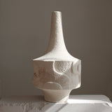 This hand built, one of a kind sculptural vessel captures the movement of the elements in the striations and rhythm of its piece. Imperfect by design, it echo nature's energy and endurance.