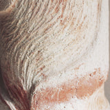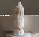 This hand built, one of a kind sculptural vessel captures the movement of the elements in the striations and rhythm of its piece. Imperfect by design, it echo nature's energy and endurance.