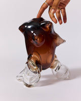 The viscosity of glass allows for experimentation whilst simultaneously requiring precision and control. Heat, air and gravity dictate which direction a form takes. Working with glass engages both unconsciousness and focused awareness, playing with its fluid state allows me to create forms that are animated and frozen in motion.