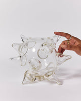 This series comprises of hybrid organic forms, crafted with metal and glass, that evoke dualities such as pleasure and discomfort, or containment and release. Each piece serves as a container of stories, emotion and memory, where expanding bubbles of glass push against the constraints of forged metal.