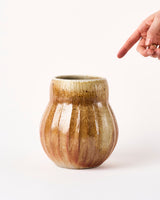 A vessel inspired by the shape of a seed pod of eucalyptus i.e. a 'gum nut'. With internal glazing, this makes this piece functional for floral arrangements.
